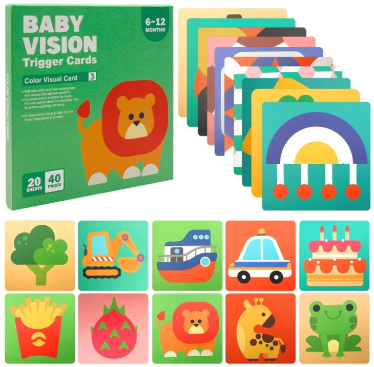 Cognitive Cards 6M+ de la Books introduc culori și contraste adaptate pentru etapa 6 luni+, susținând atenția, urmărirea vizuală și primele asocieri. Cardurile pot fi folosite în sesiuni scurte de „arăt–denumește–repetă”, pe păturică sau în deplasare. Cartonul gros cu muchii rotunjite le face rezistente și sigure.